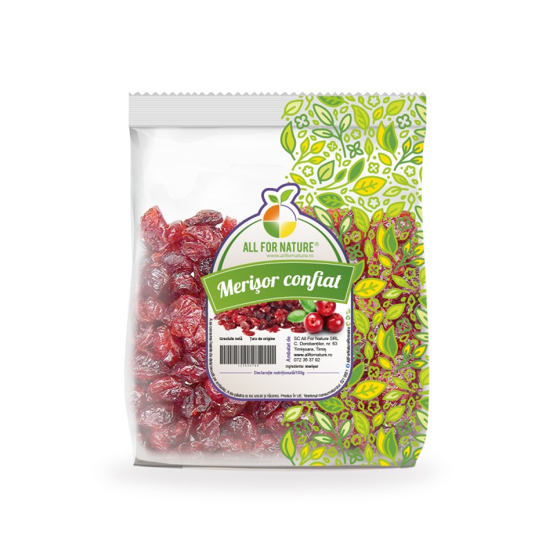 Gustare Delicioasă: Merișorul confiat poate fi savurat ca o gustare răsfățătoare și indulgentă. Înlocuiește dulciurile obișnuite cu bucați de merișor confiat pentru a satisface pofta de dulce și a te bucura de o experiență gustativă plăcută.