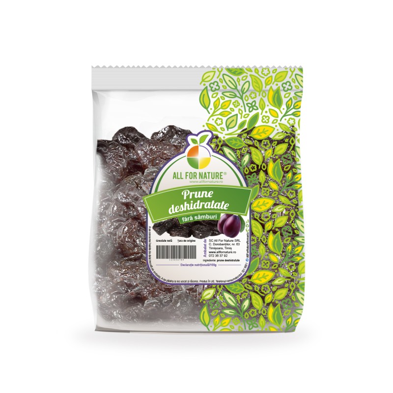 Prunele deshidratate sunt o gustare delicioasă și sănătoasă, perfectă pentru a satisface pofta de dulce și pentru a-ți completa aportul de fructe într-un mod convenabil. Sunt obținute prin procesul de deshidratare a prunelor proaspete, care îndepărtează apa din fructe, concentrând aromele și nutrienții esențiali. Bucură-te de gustul intens al Prunelor Deshidratate. O gustare sănătoasă și delicioasă.